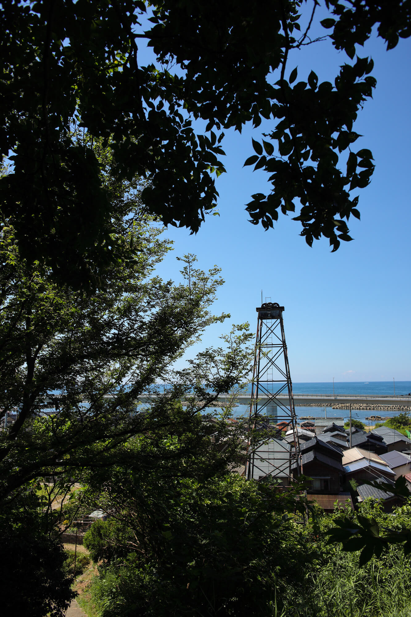 油井のようですね。そういえば道の駅の公園にモニュメントがありましたね。調べてみるとここ一帯はかつて「尼瀬油田」と呼ばれる石油の産地で、1980年代まで採掘が行われていたそうです。採掘が終了したあとは石油記念館や道の駅が建てられ、今に至るとのことで、これはその産業遺産なんですね。